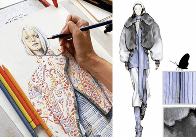 Students will practice technical aspects of design, such as composition and pattern while cultivating their originality through conceptual thinking. Students will borrow inspiration from today’s trends to create designs that demonstrate their individual tastes and styles and learn how to draw the figure for fashion as well as illustration techniques used in the fashion industry.